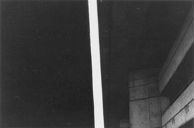 The image above is called ‘Paris’, created in 1980 and part of a series called Low Light. I haven’t been able to find much written about Downsbrough’s work, so I don’t know if the line has been introduced by Downsbrough or exists as an object in the cityscape. However, what is interesting is the splitting of the space with the near vertical line, the title, referring to the iconic French capital, but picturing the mundane and how the composition challenges the viewer to consider what is being looked at, what is space before us.