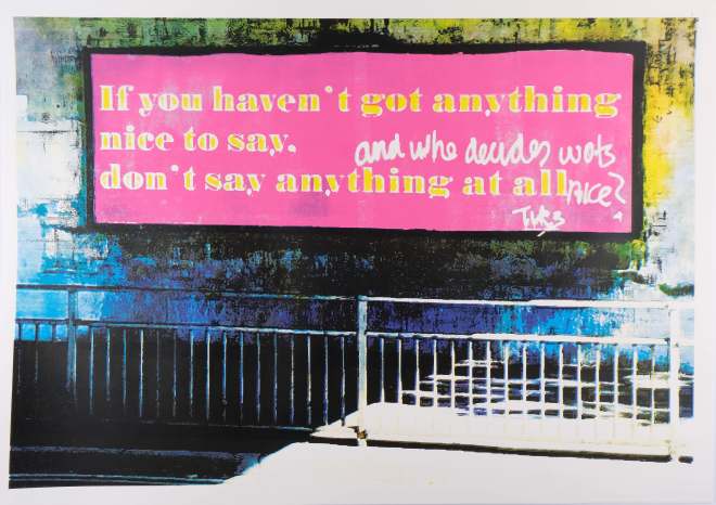 Who decides? turns out to be quite a pertinent comment. As part of my MA Fine Art show in September 2024 I did a text piece on a billboard in Leeds. It was sited on the bridge support of a roundabout at one end of Wellington Street. As you can see from the image it said: