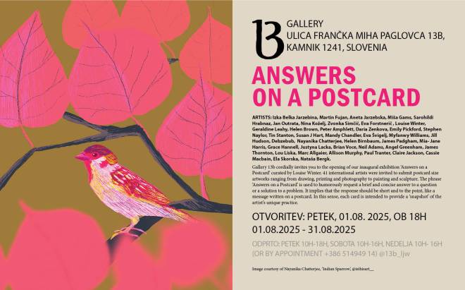 The exhibition is the first to be held in a new exhibition space called 13b in Slovenia curated by Louise Winter who is using her own home as a creative space and gallery. This is what she has to say about 13b: