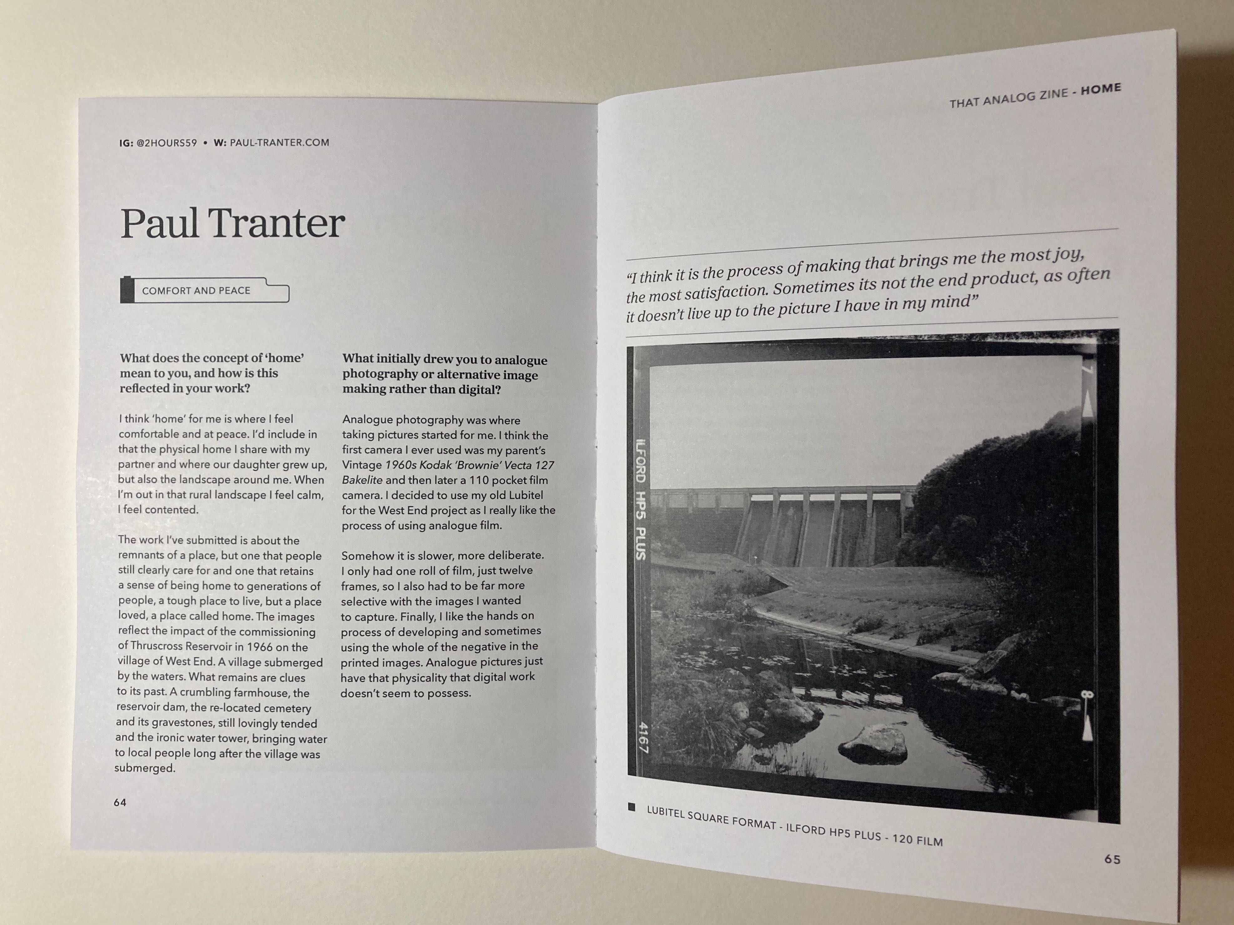 Very excited to return home from my Christmas travels to find a copy of ‘That Analog Zine’ in the post. This is the very first edition, curated by @thatanaloggirl, with the theme of ‘Home’. I submitted works from a series of photographs I took linked to the sunken village of West End in North Yorkshire, submerged beneath the waters of Thruscross Reservoir. It is a village that partly reappeared this summer due to the severe lack of rainfall. I took my pictures using a Lubitel square format camera with 120 black & white film. It is a fairly basic camera and I’ve had it many years but it still takes a good photograph if the light is right.