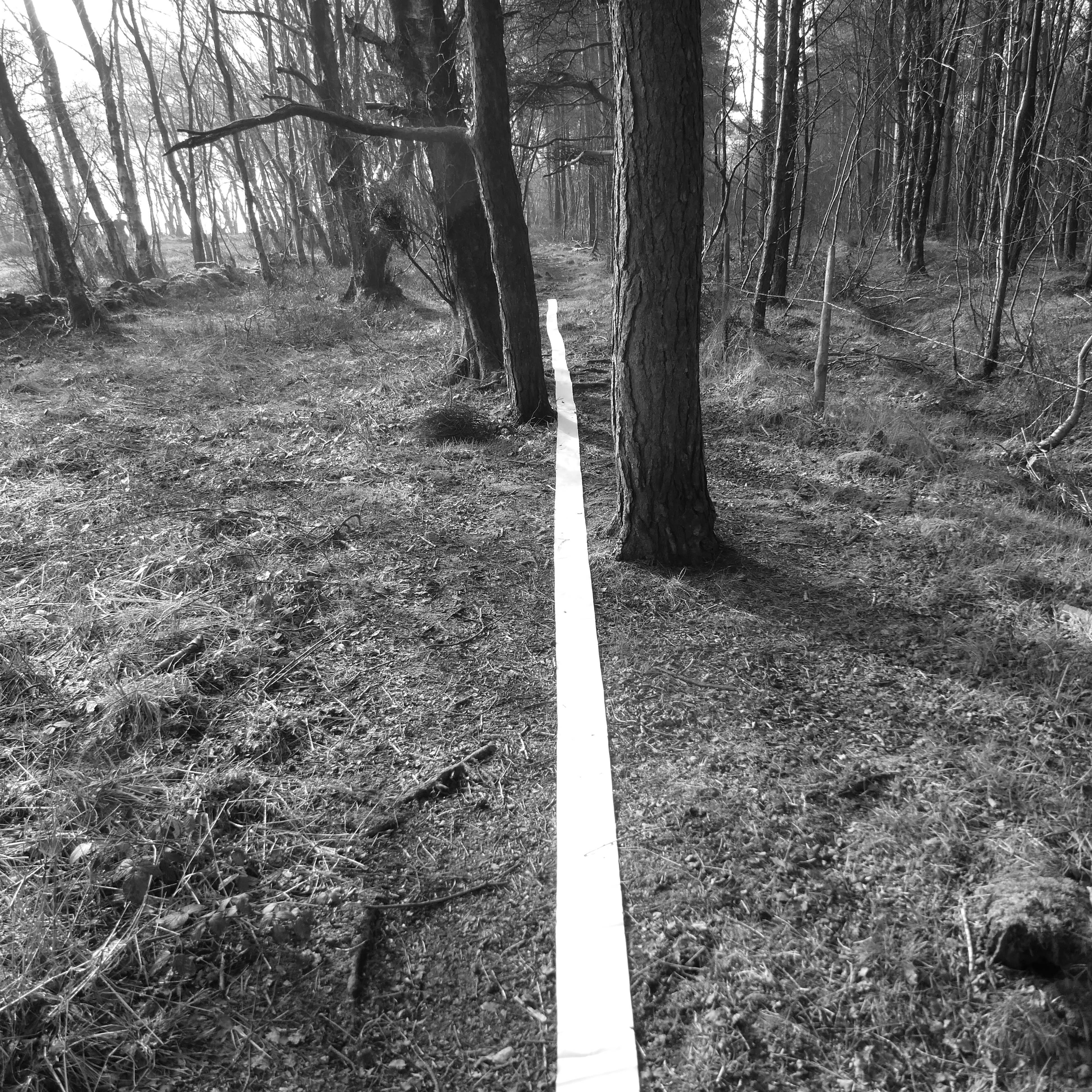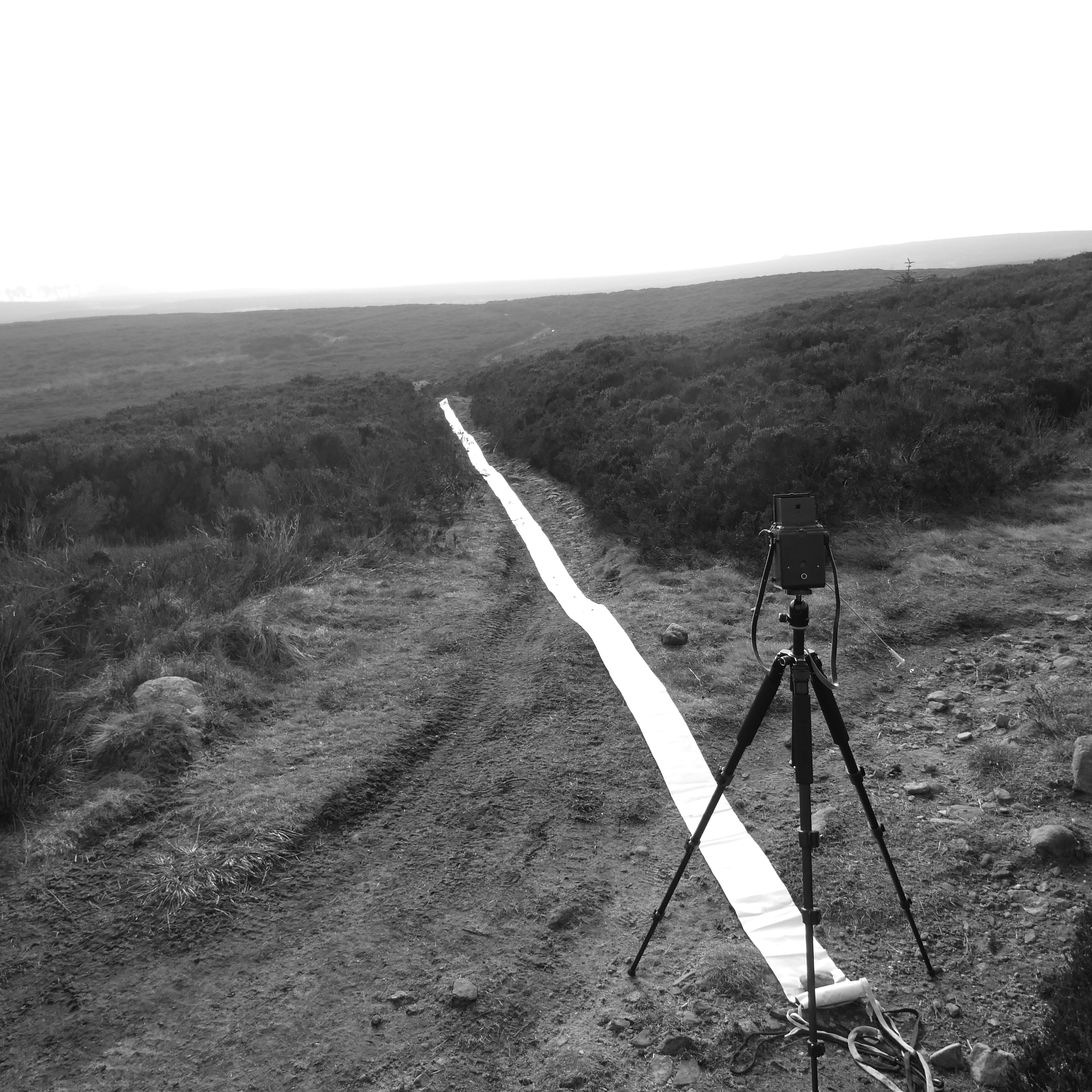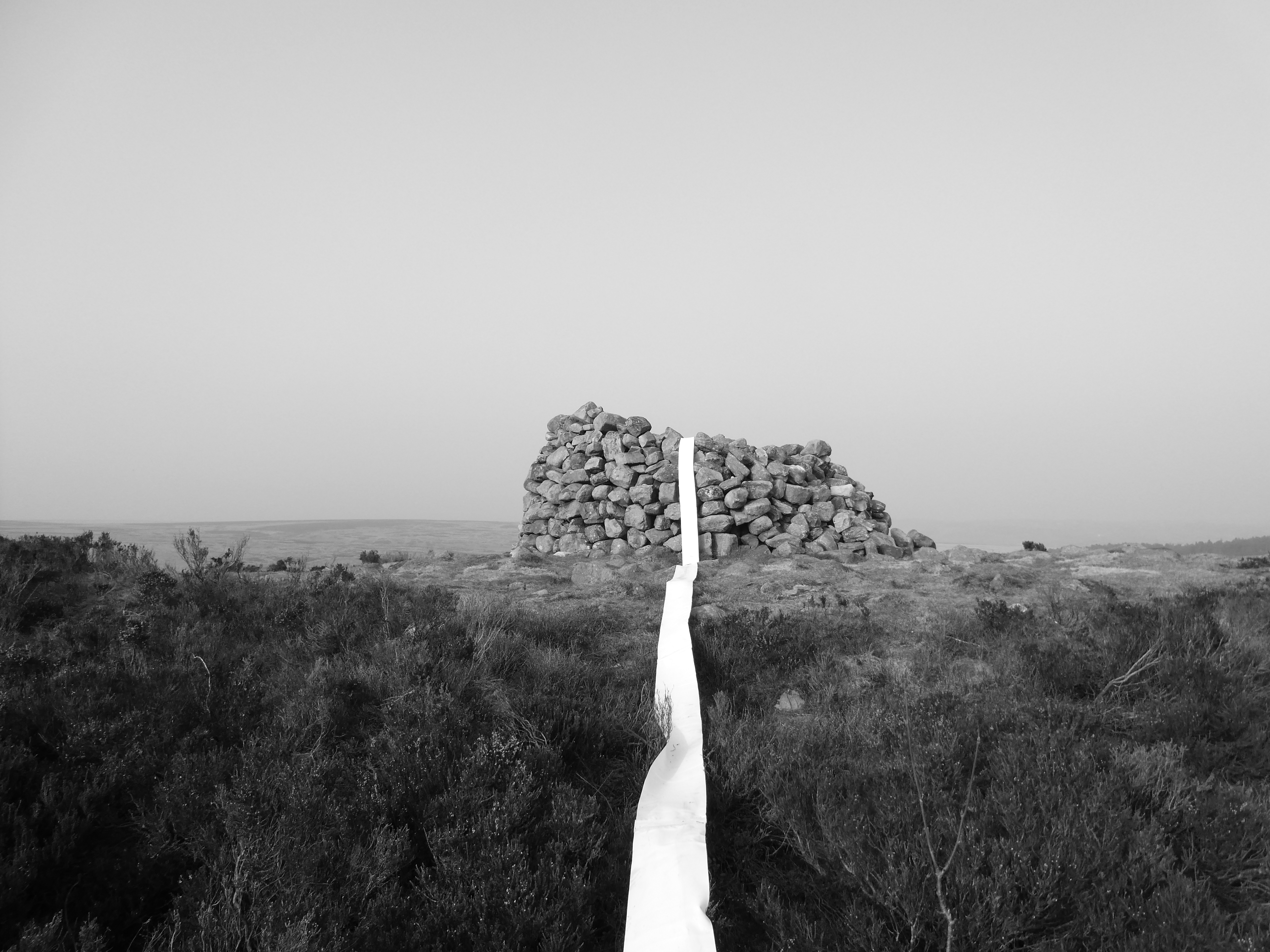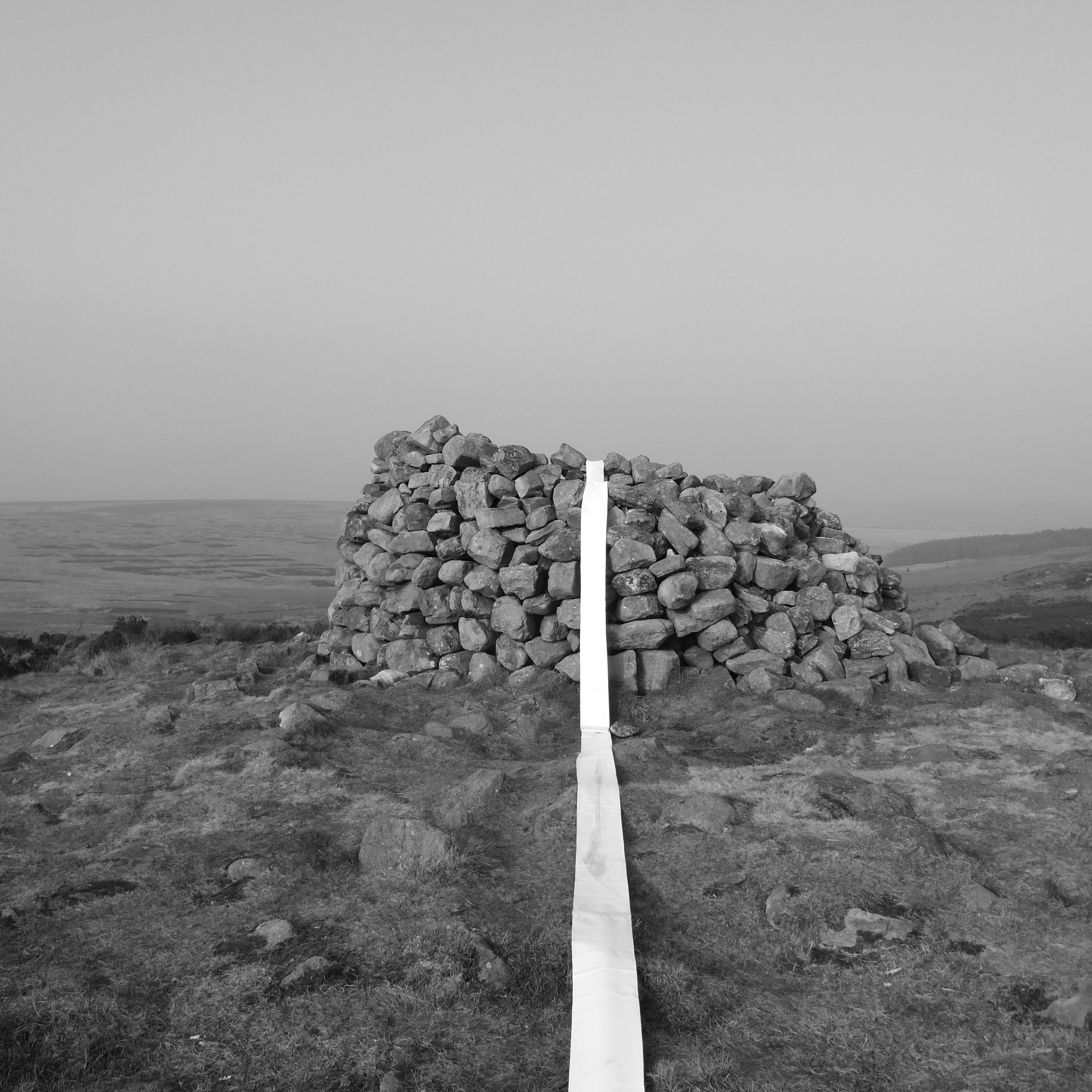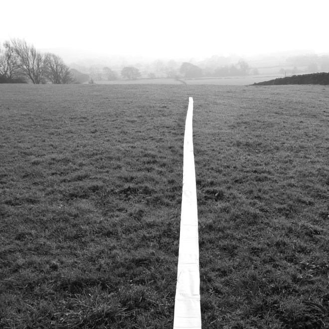 A key part of my practice is making work in the landscape. The first work I made was called ‘Drawing a line on Pelstone Crag’ which involved suspending a 14m long white vinyl line (made from an old projector screen) down the face of Pelstone Crag on Otley Chevin.