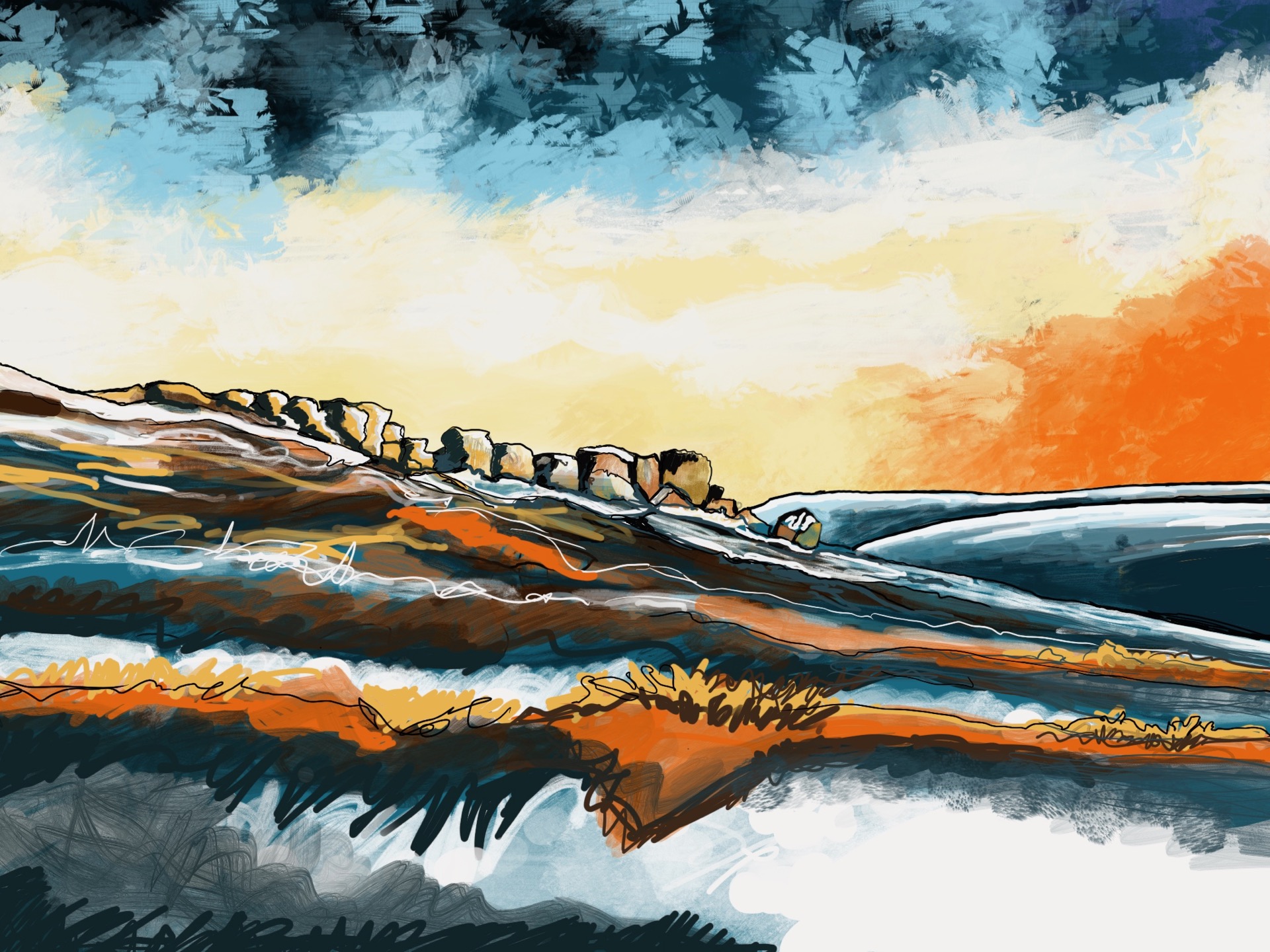 This is a selection of digital artwork created on an iPad using the Procreate App. I often base my digital artwork on drawings, using pencil and pencil crayon, sometimes combining the original artwork with a digital background.