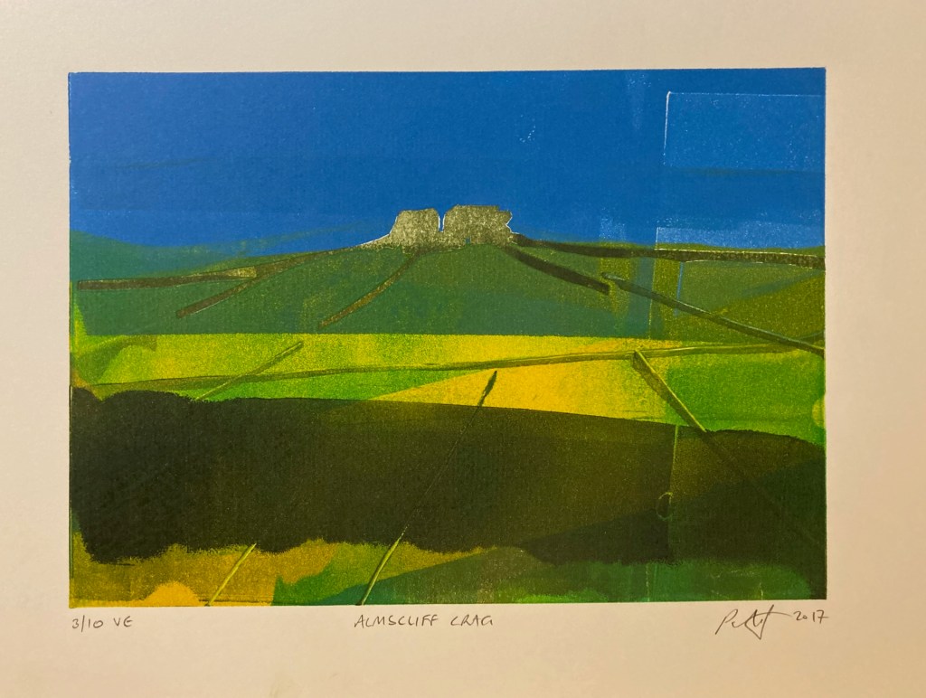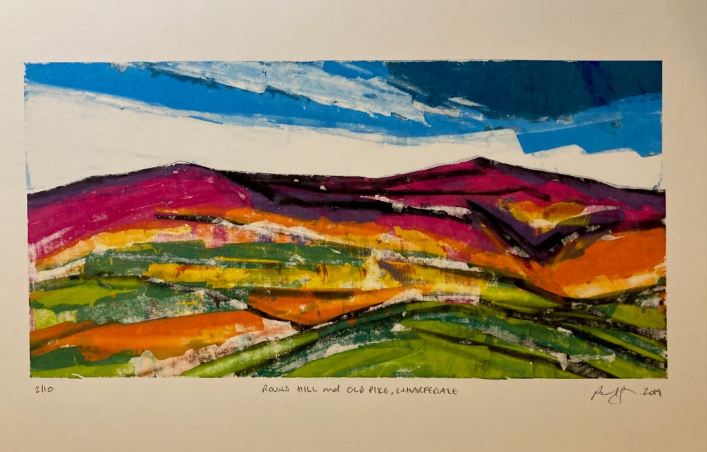 Round Hill and Old Pike, Wharfedale – screen print. 2 of 10 varied edition. Print area 29.5 x 15 cm. Paper size 42 x 30 cm. Price £30