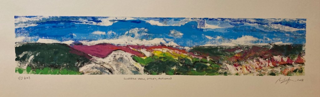Surprise View, Otley, Autumn – screen print. 1 of 3 varied edition. Print area 42 x 8 cm. Paper size 59 x 29 cm. Price £90