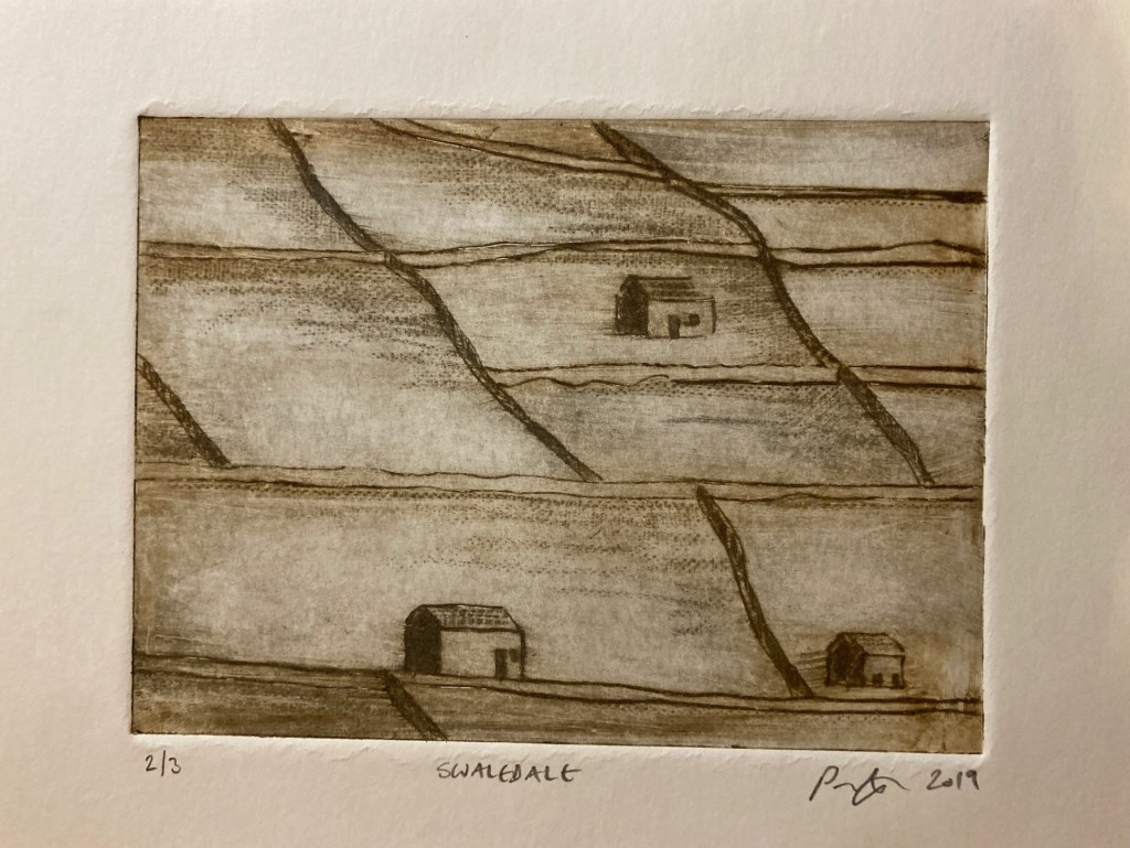 Swaledale – drypoint. 2 of 3. Print area 14.5 x 11 cm. Paper size 21 x 15 cm. Price £25