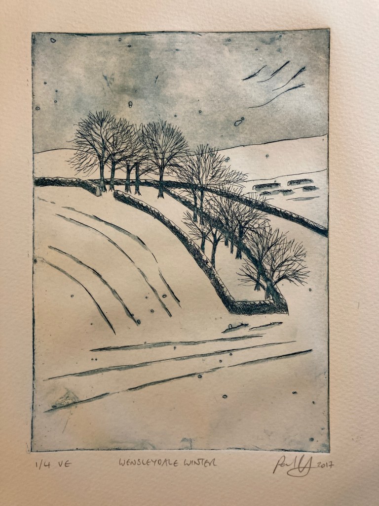 Wensleydale Winter – aquatint (copper plate etching). 1 of 4 varied edition. Print area 21 x 14.5 cm. Paper size 42 x 30 cm. Price £35